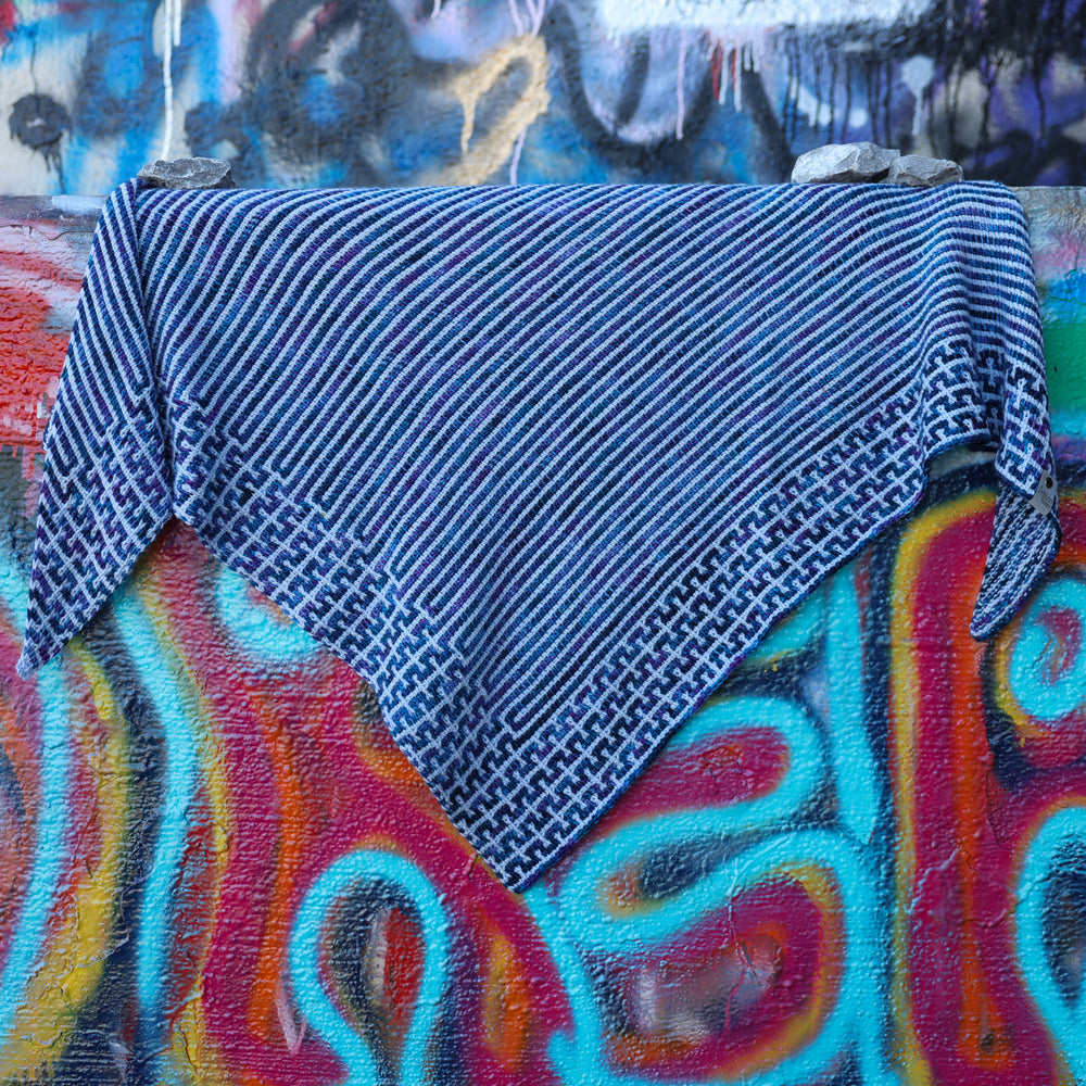 The Calliope Shawl is a two-color Tunisian crochet triangle shawl designed to highlight clean lines and thoughtful color play. Simple yet striking, this pattern is all about balance—between texture and drape, boldness and ease.