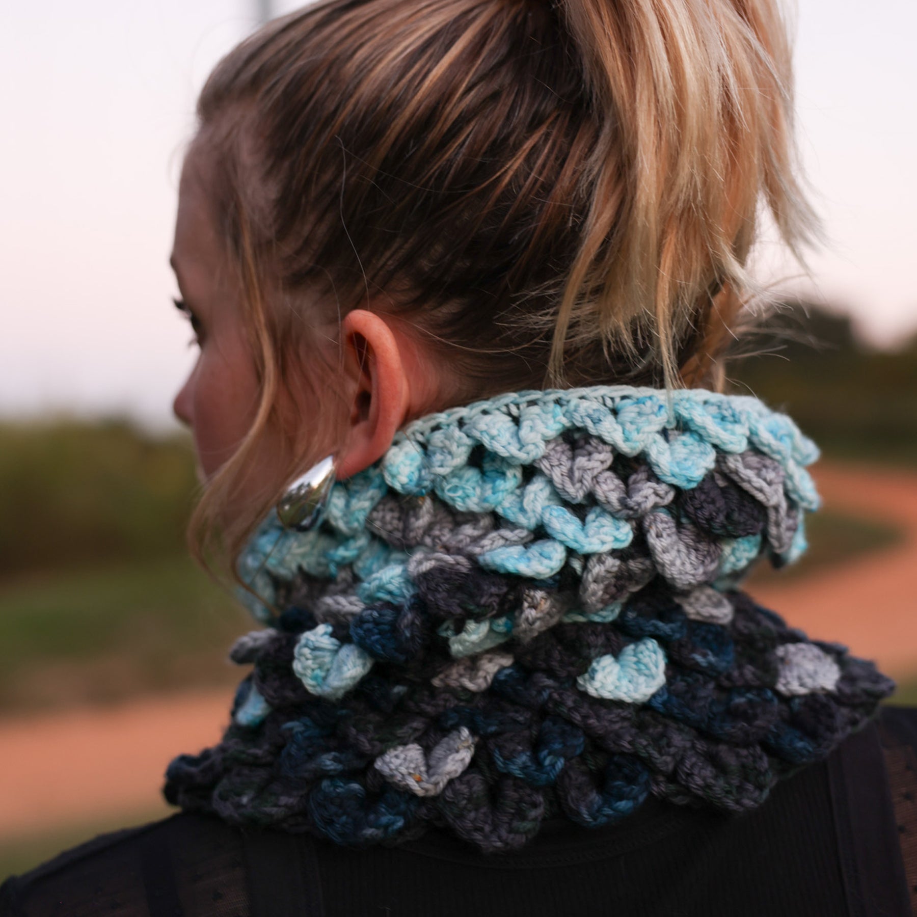 The Voidbane Cowl & Mitts Set lets you don your own battle gear against the cold. Worked in four shades of DK weight yarn, this set is cozy, customizable, and snug enough to stay put whether you’re braving the chill or defending against the Pretender King.