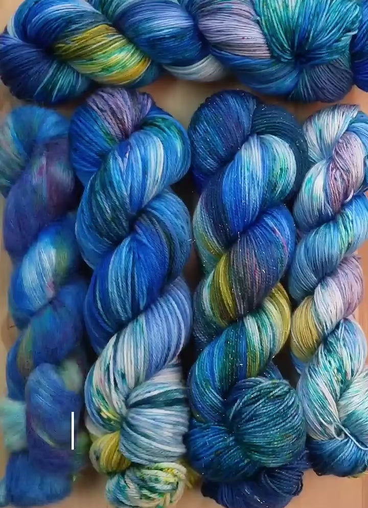 🌌 Starry Night is a swirling blend of multi-hued blues, white, gold, and green inspired by the iconic painting. One of the most requested colorways over the years. We hope you love it! Starry Night has multi-hued blues, white, gold, and green color swirls and speckles. With minimal pooling and lots of fun speckles, Starry Night is for sure a BSY favorite.