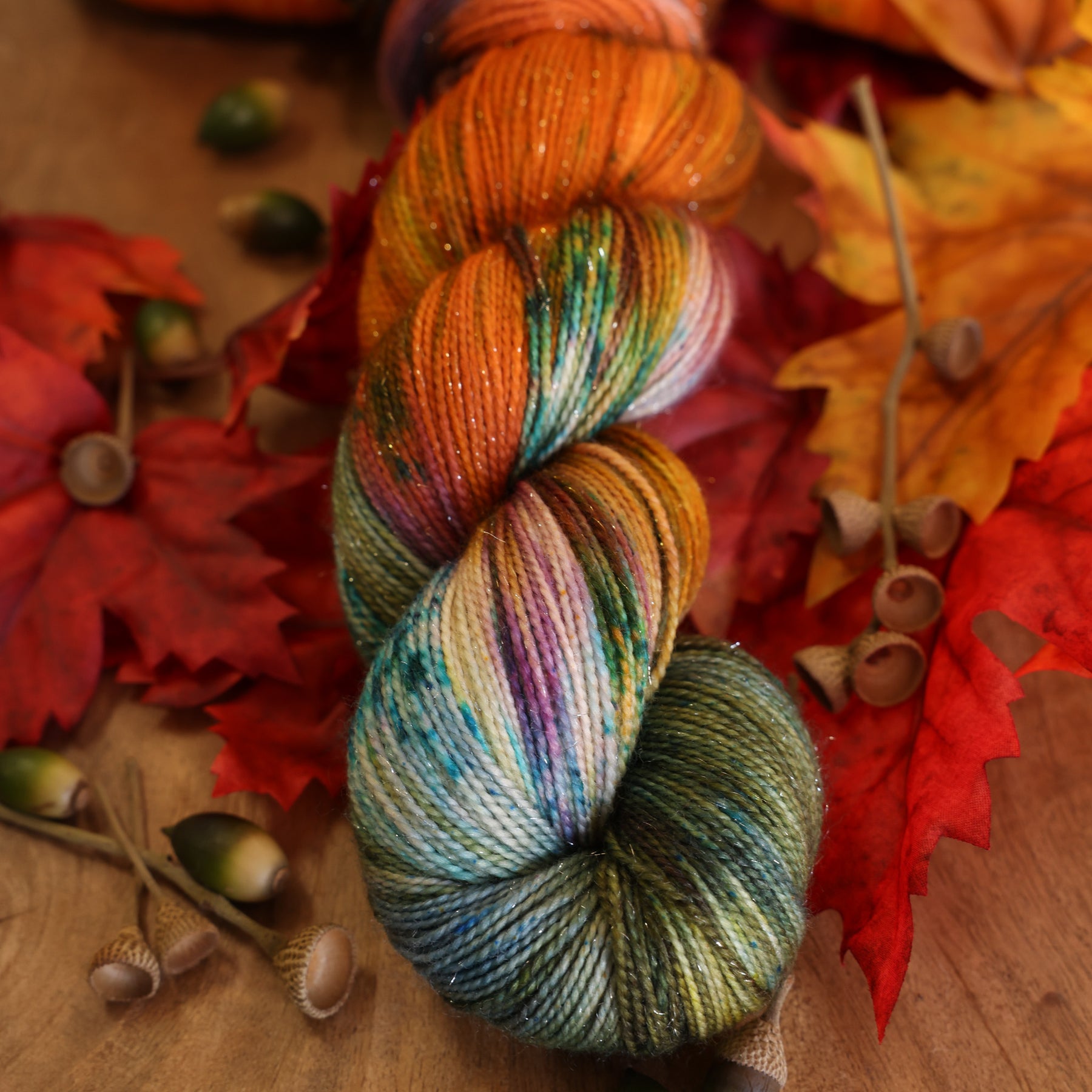 Sparkle Fingering: 75/20/5 Superwash Merino/Nylon/Stellina; 438 Yards; 100 grams. A strong spun sock weight yarn with a tiny hint of glimmer spun into the yarn.