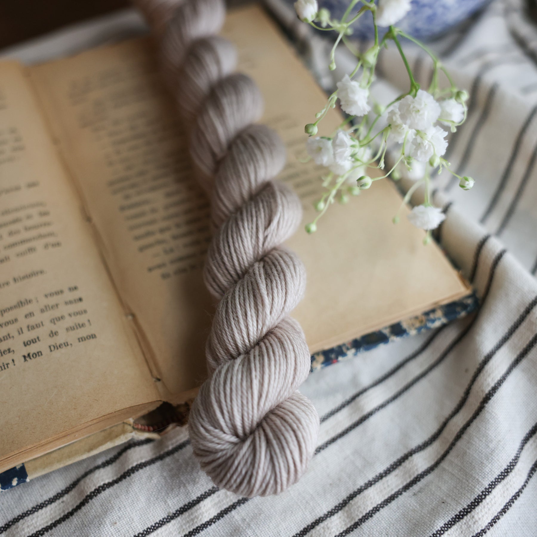 DK – 75/25 Superwash Merino/Nylon (4ply), 245 Yards | 224 Meters (100g). Durable, springy, and cozy. Ideal for sweaters, scarves, cowls, and cold-weather layering.