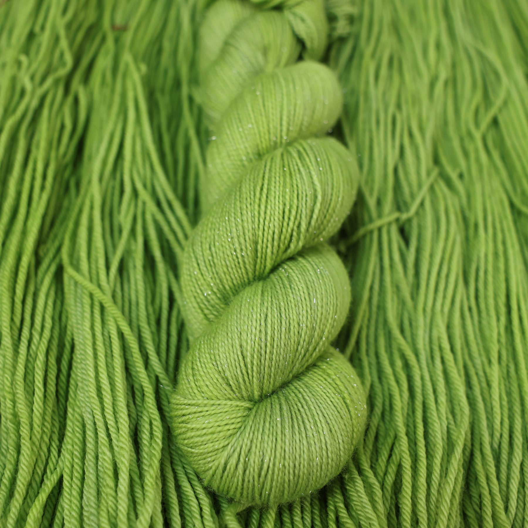 Sparkle DK - 75/20/5 SW Merino/Nylon/Stellina (4ply), 231 Yards | 211 Meters (100g). Cozy 4 -ply yarn that has a slight silver glimmer to it. Use it for the most glamorous of projects!