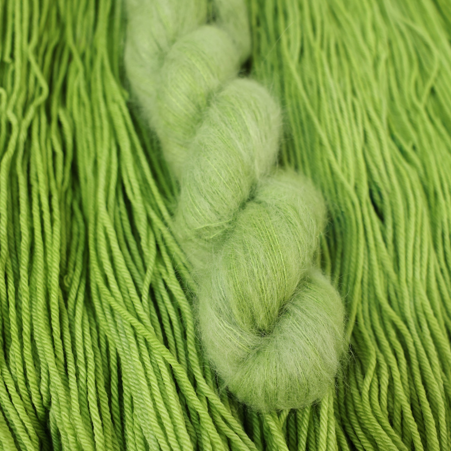 Suri Alpaca Silk - 74/26 Suri Alpaca/Silk (4ply), 328 Yards | 299 Meters (50g). Lace weight with a luxurious halo. Use solo or held double with another base for texture. Non-superwash – hand wash only.