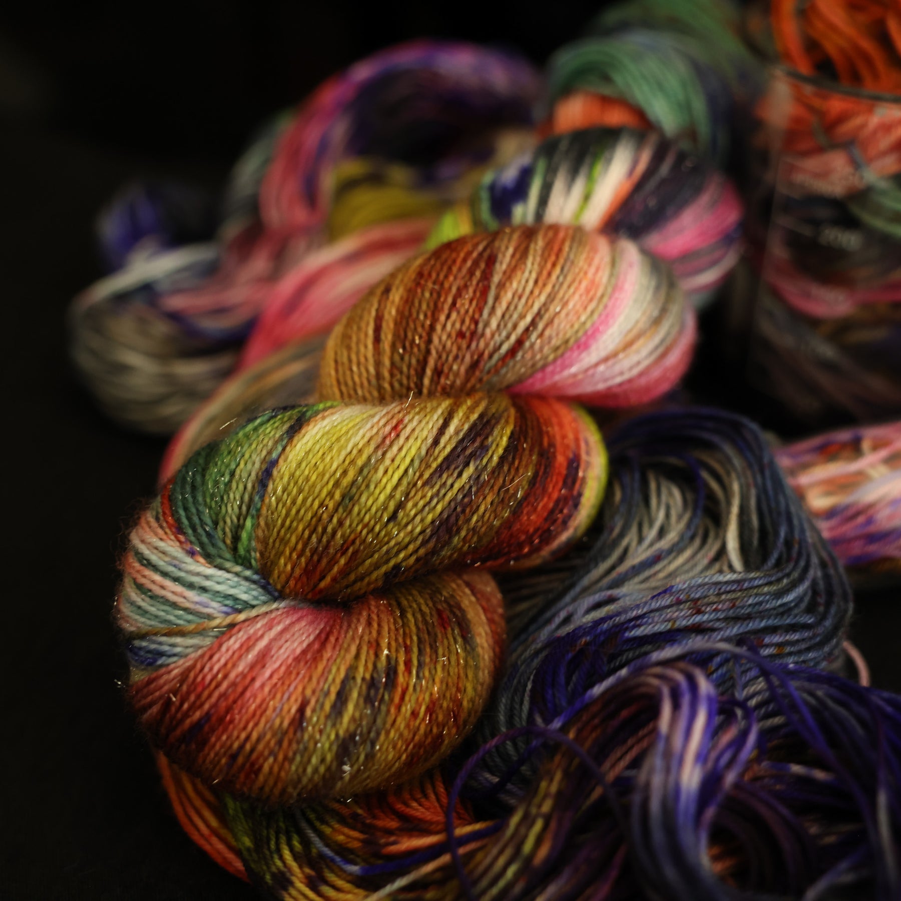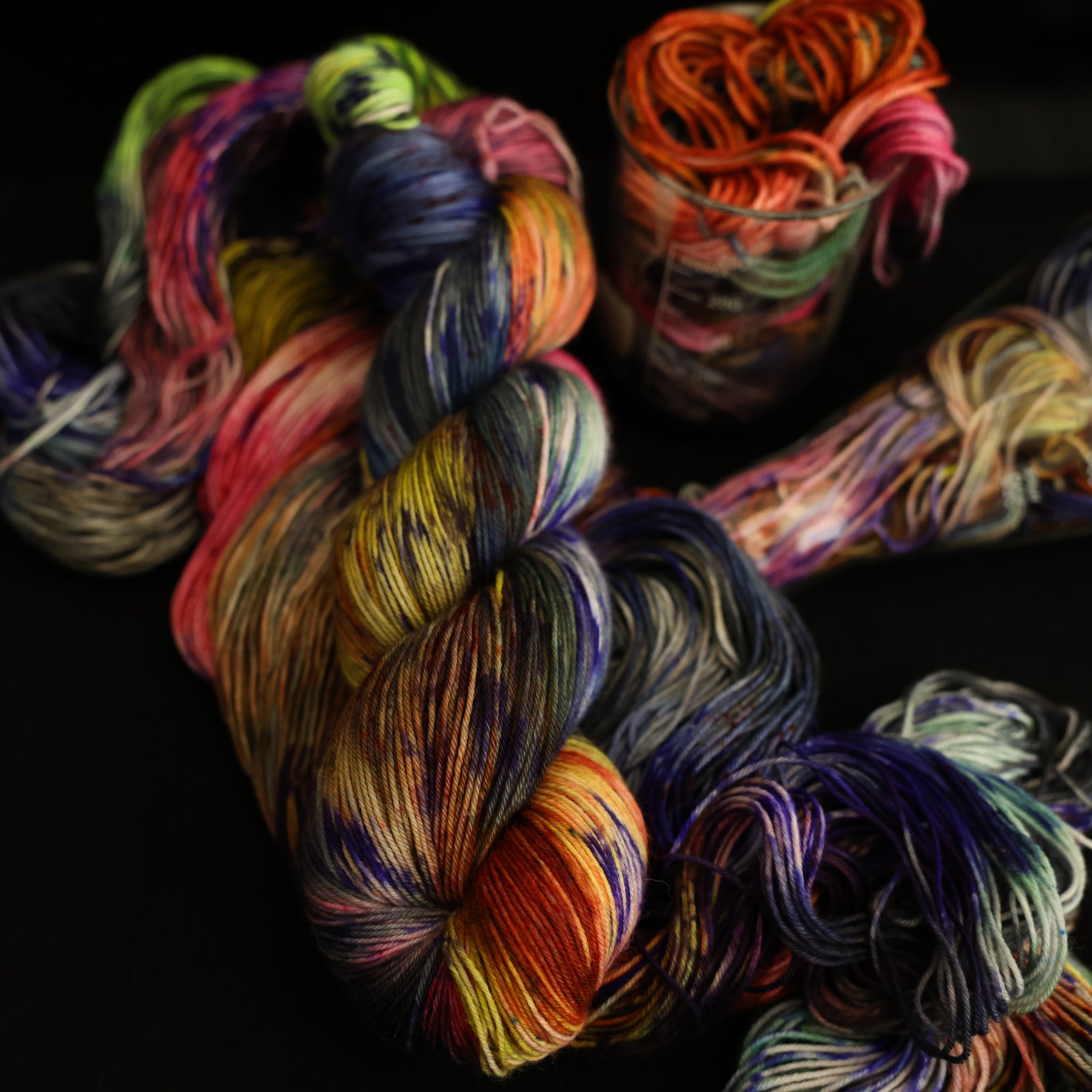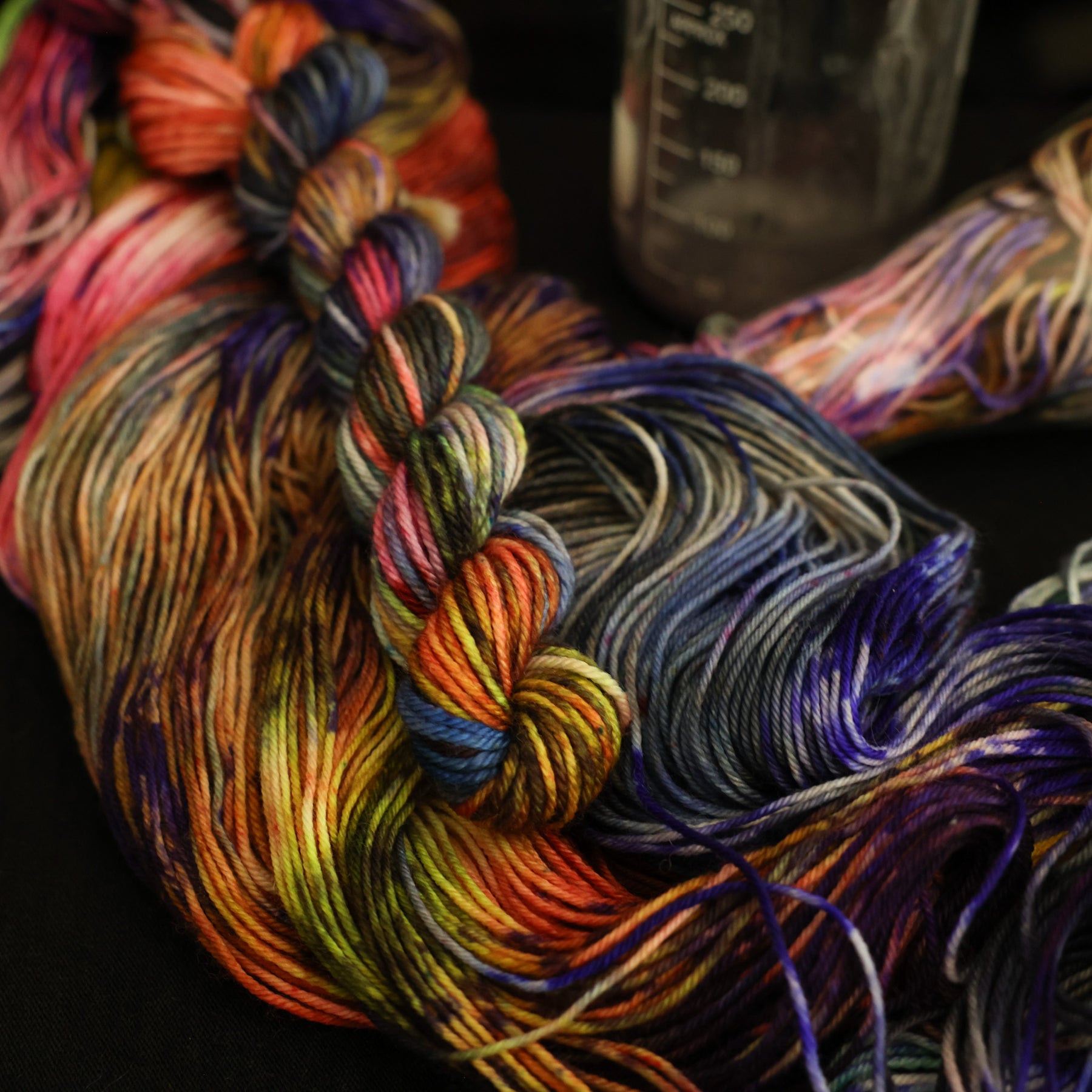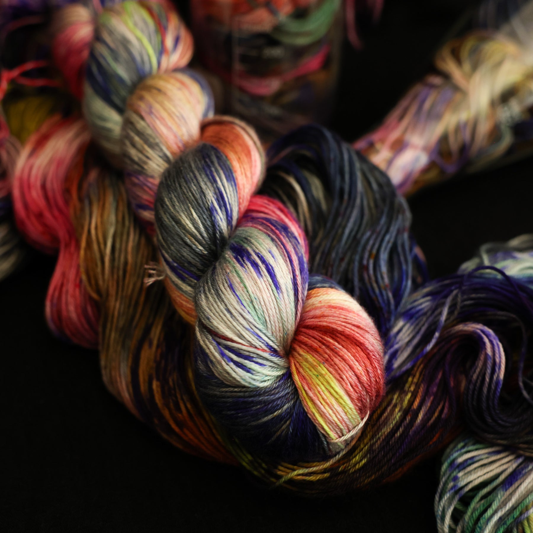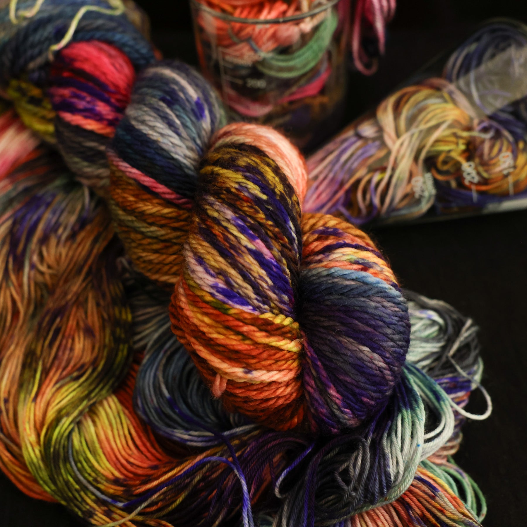 ⚠️ All yarn is sold in skeins and must be caked (wound) before use. New to hand-dyed yarn? Visit our website for a quick demo on how to wind your skein into a cake. We also offer optional winding services, which add 3–5 business days to processing. Wound skeins are not eligible for returns.
