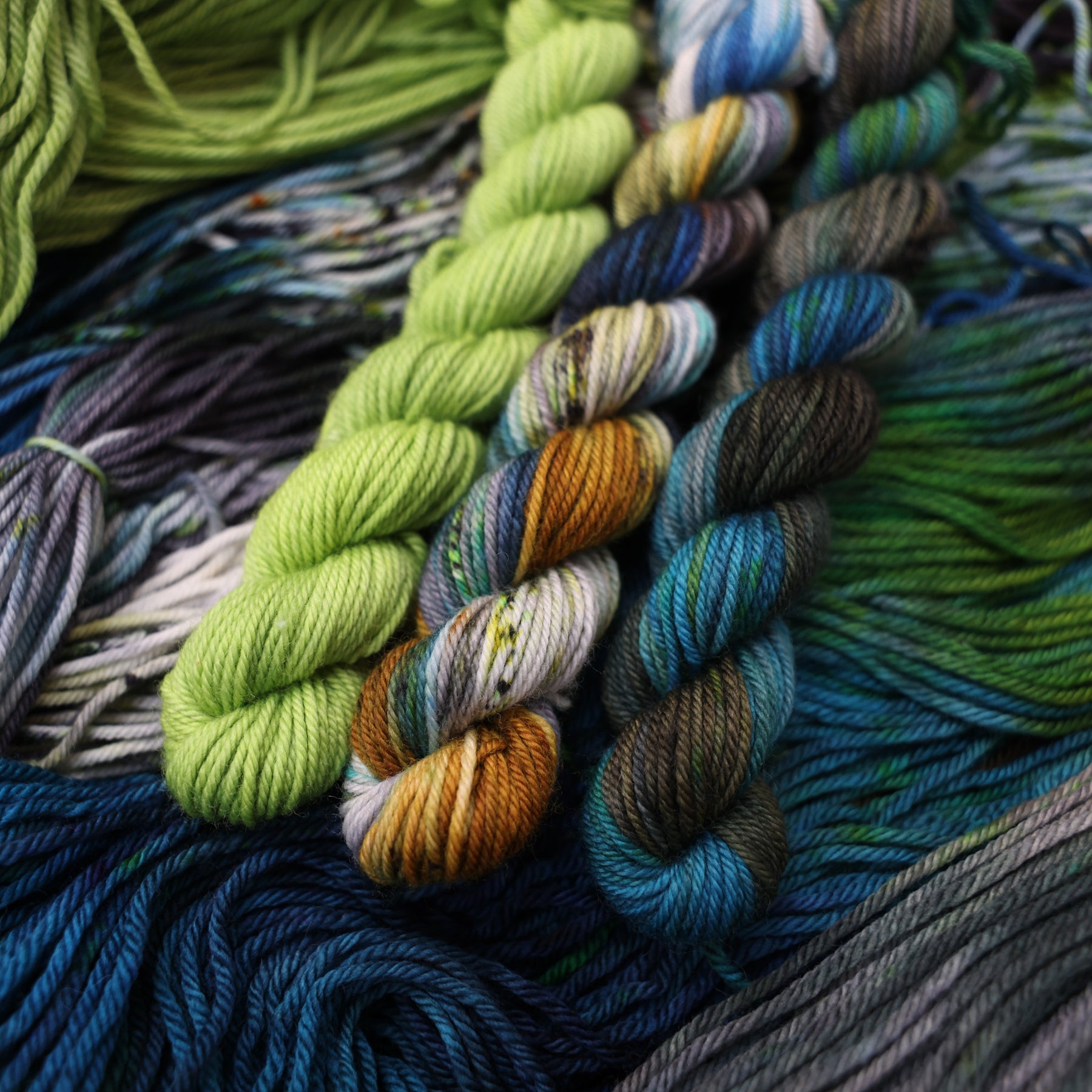 ⚠️ All yarn is sold in skeins and must be caked (wound) before use. New to hand-dyed yarn? Visit our website for a quick demo on how to wind your skein into a cake. We also offer optional winding services, which add 3–5 business days to processing. Wound skeins are not eligible for returns.