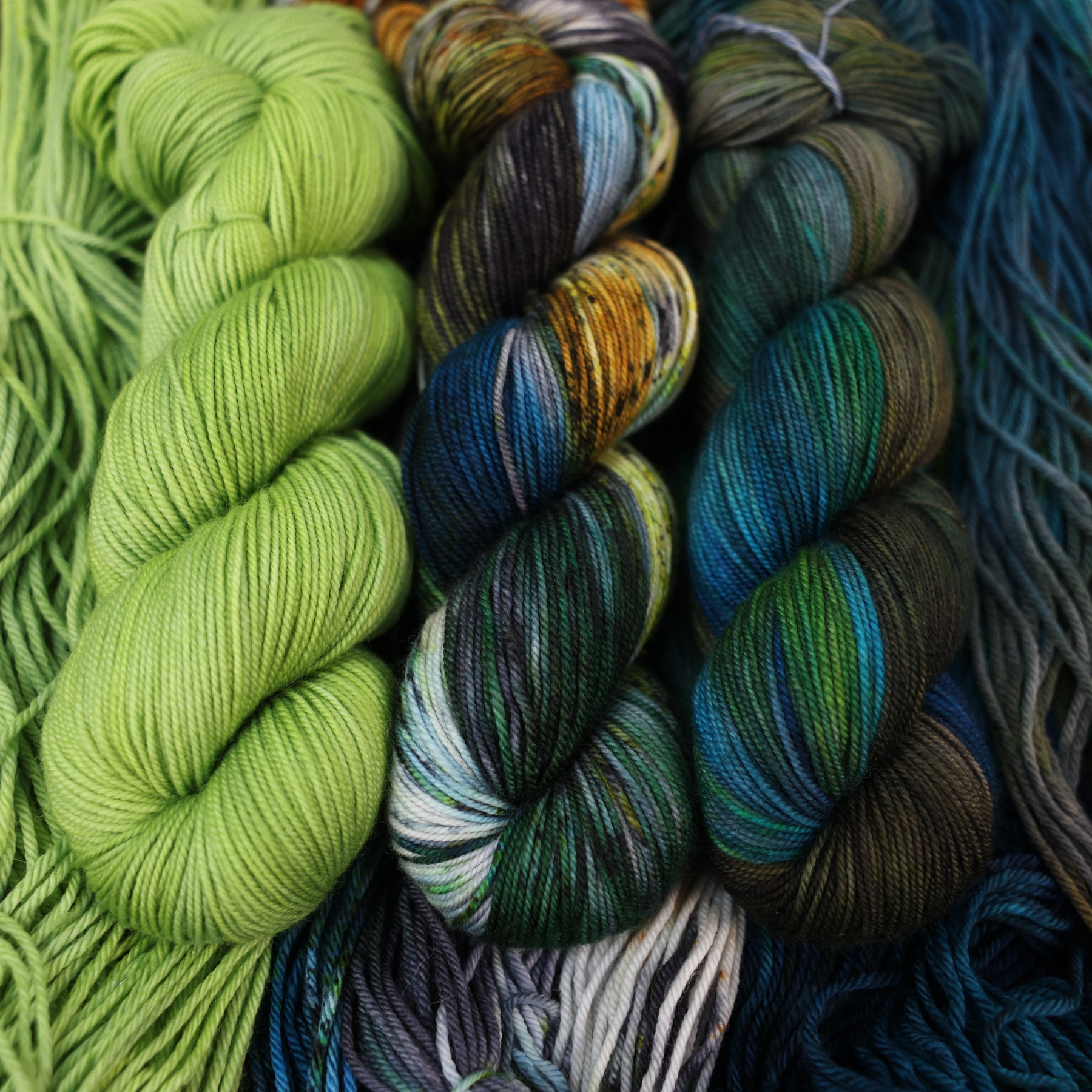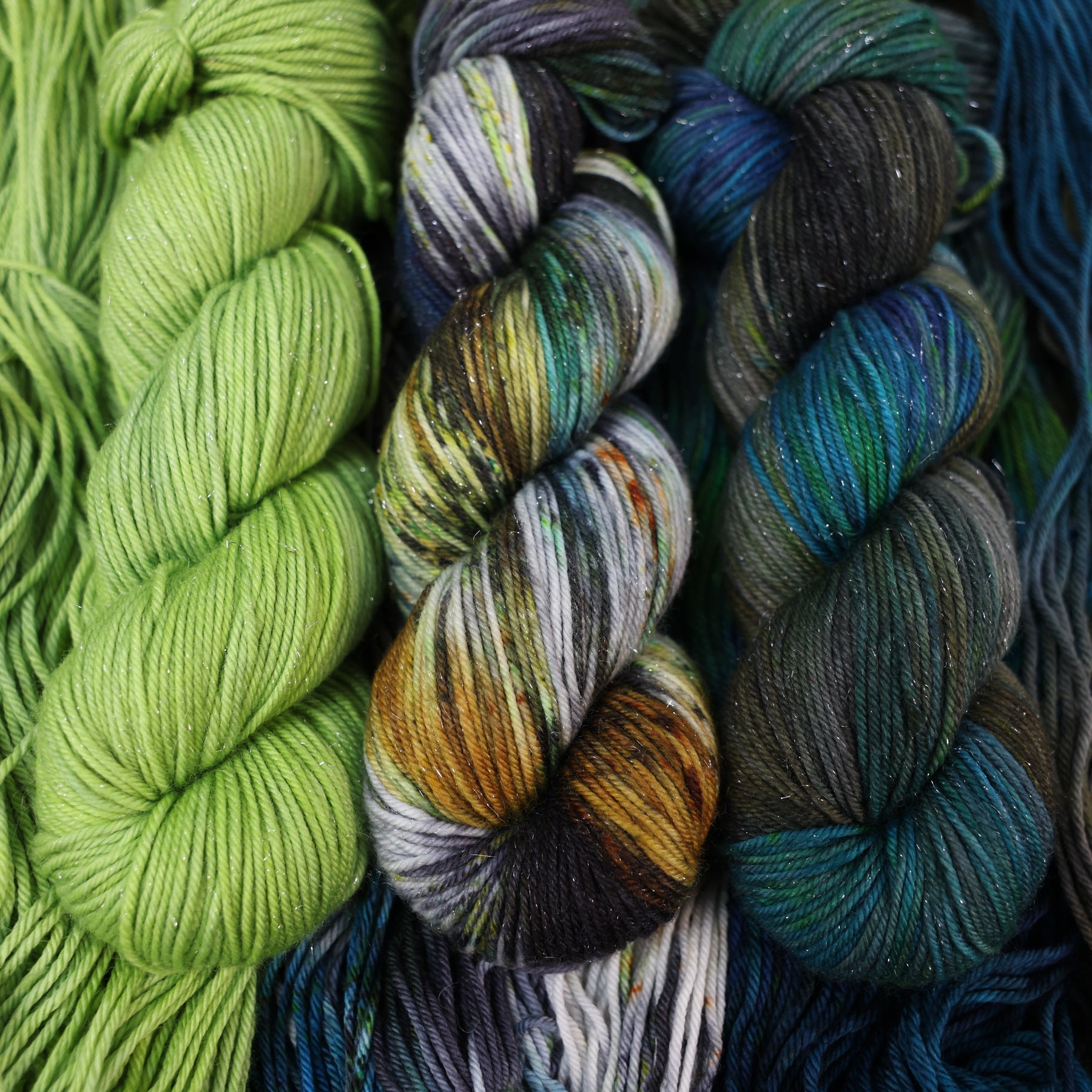 🏴☠️ Ahoy, crafters! This set is made for the darkest of ocean voyages or an exciting project. Three colorways hand dyed to compliment each other.