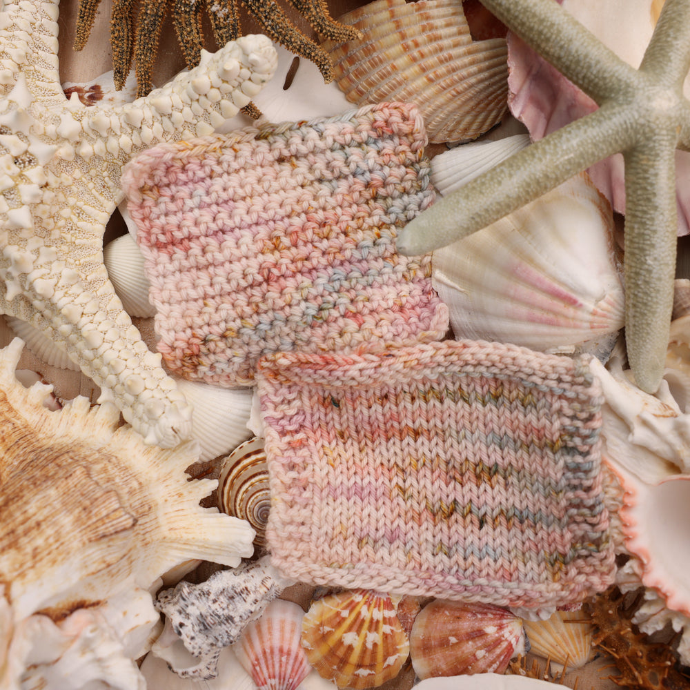 🐚 Murex is a whimsical seashell-inspired colorway with soft coastal charm. It is a magical pink, white, and blue colorway with tan speckles. This colorway is inspired after shells that sound like the sea. You can pair it with the other colorways in our Ocean Treasures Set.