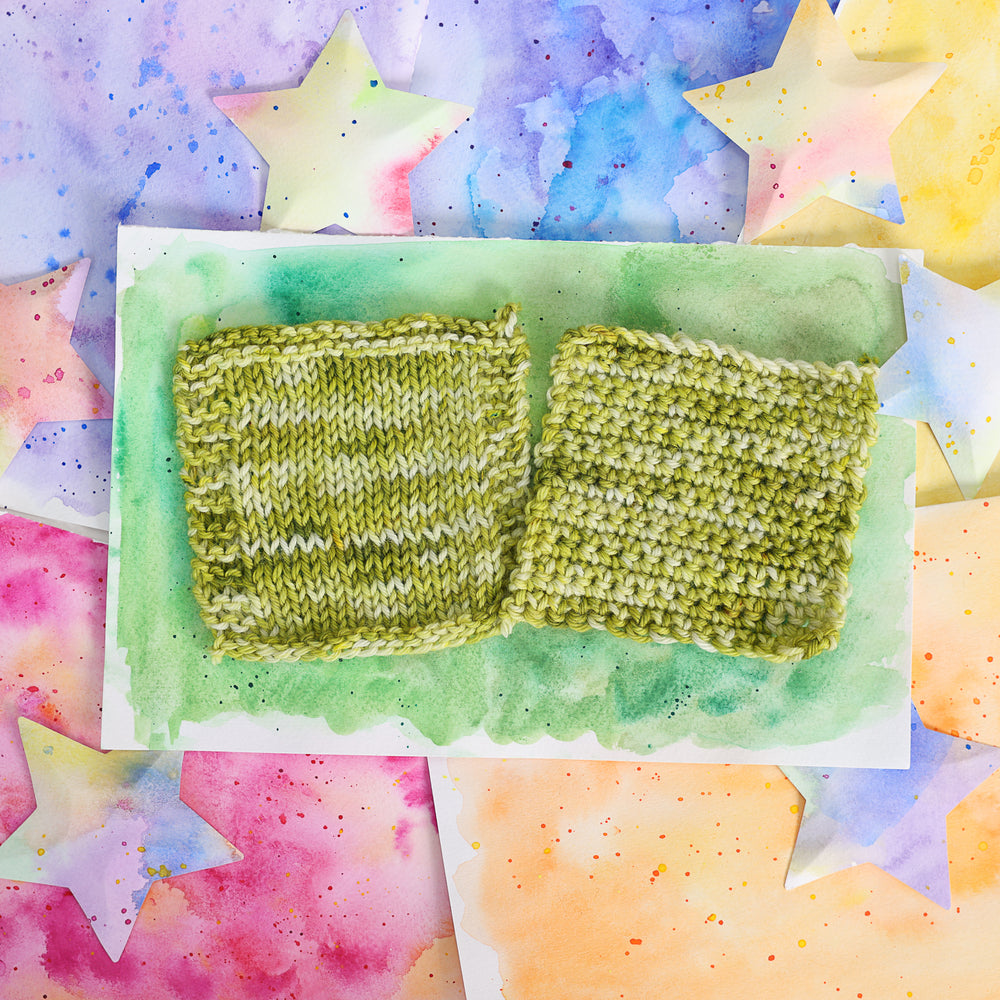 Sour Apple is an amazing retro green and white hand dyed yarn with green speckling.