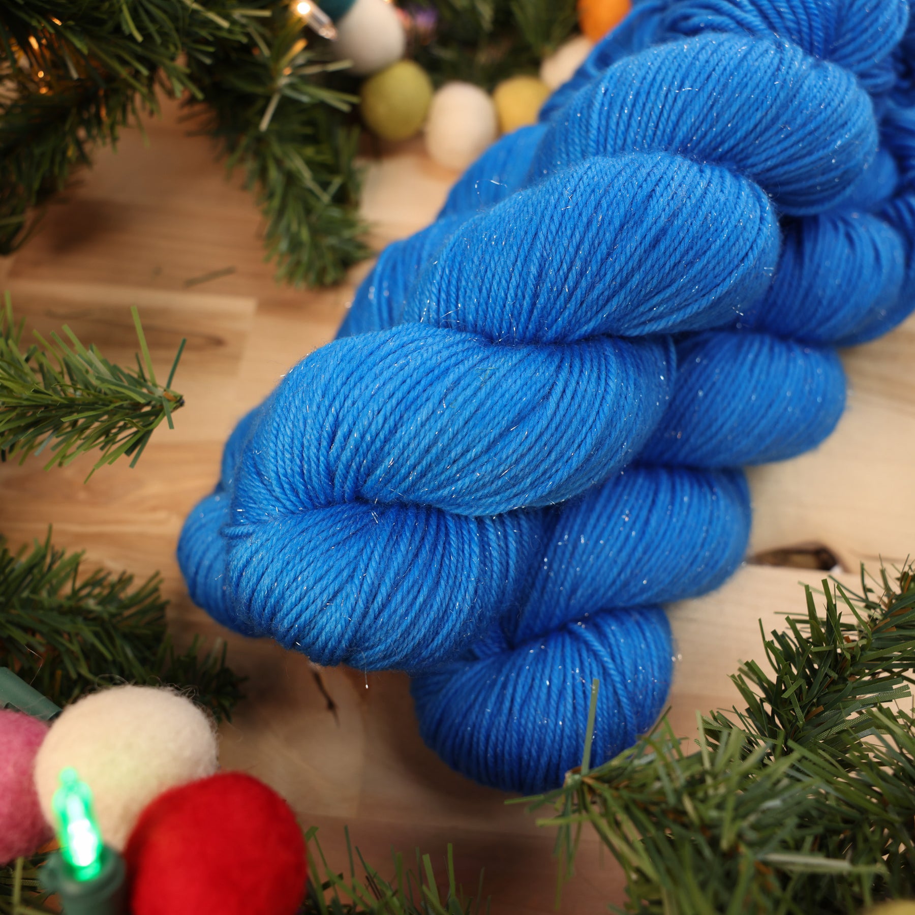Sparkle Fingering – 75/20/5 SW Merino/Nylon/Stellina (2ply), 438 Yards | 400 Meters (100g). A durable sock-weight yarn with a subtle shimmer spun throughout. Adds a hint of sparkle without sacrificing strength.