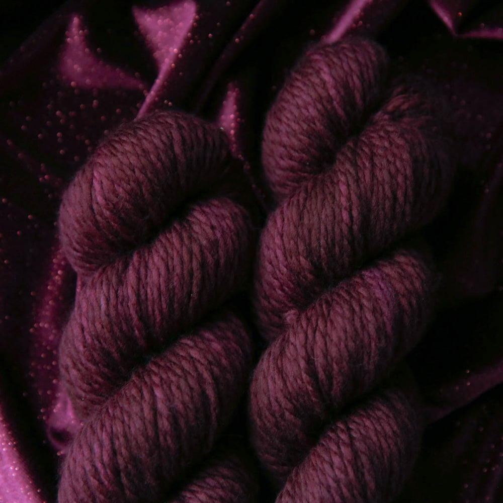 Bordeaux is a gorgeous and dark wine purple semi-solid yarn. This colorway is truly luxurious enough for royalty.