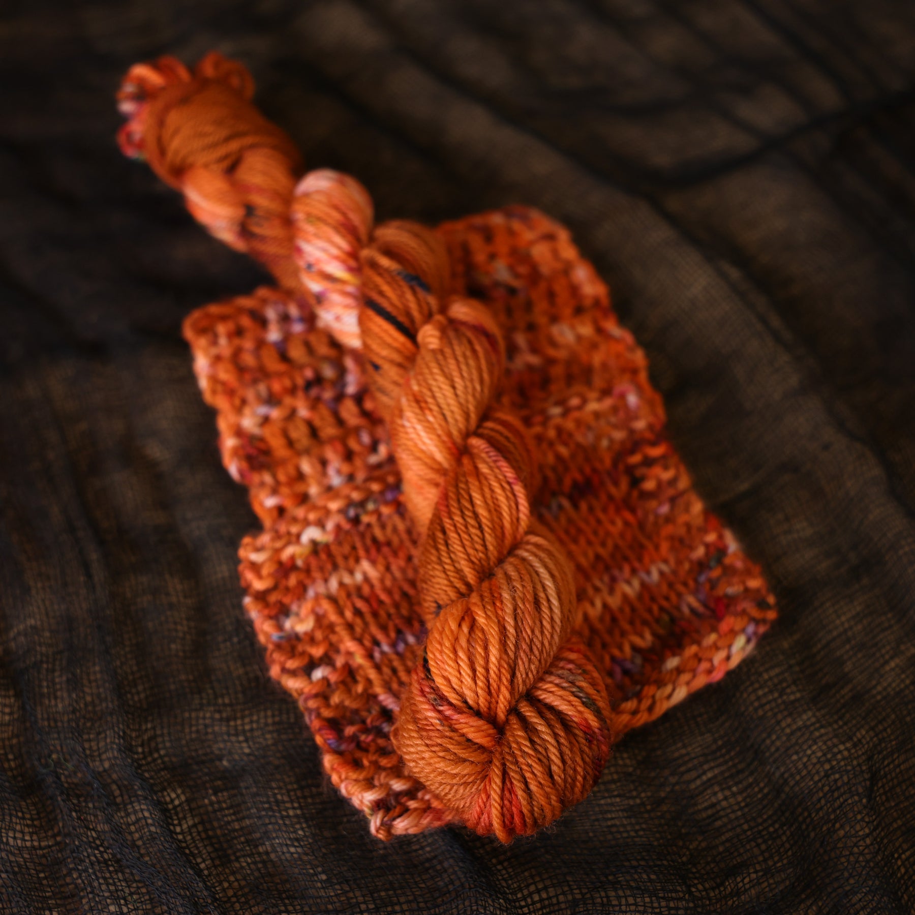 DK Mini: 75/25 Superwash Merino & Nylon; 49 Yards; 20 grams.This is a mini skein. of our DK weight yarn.
