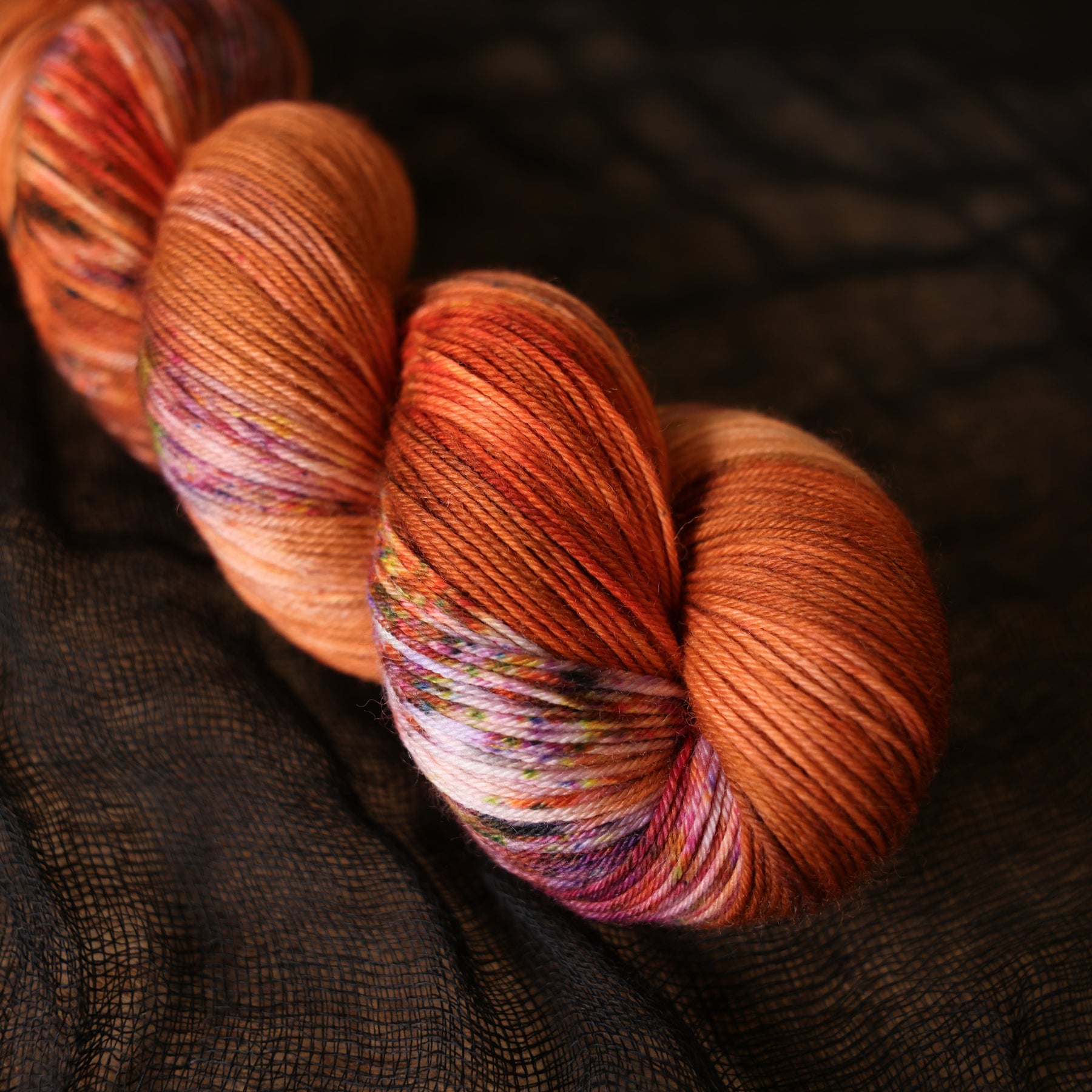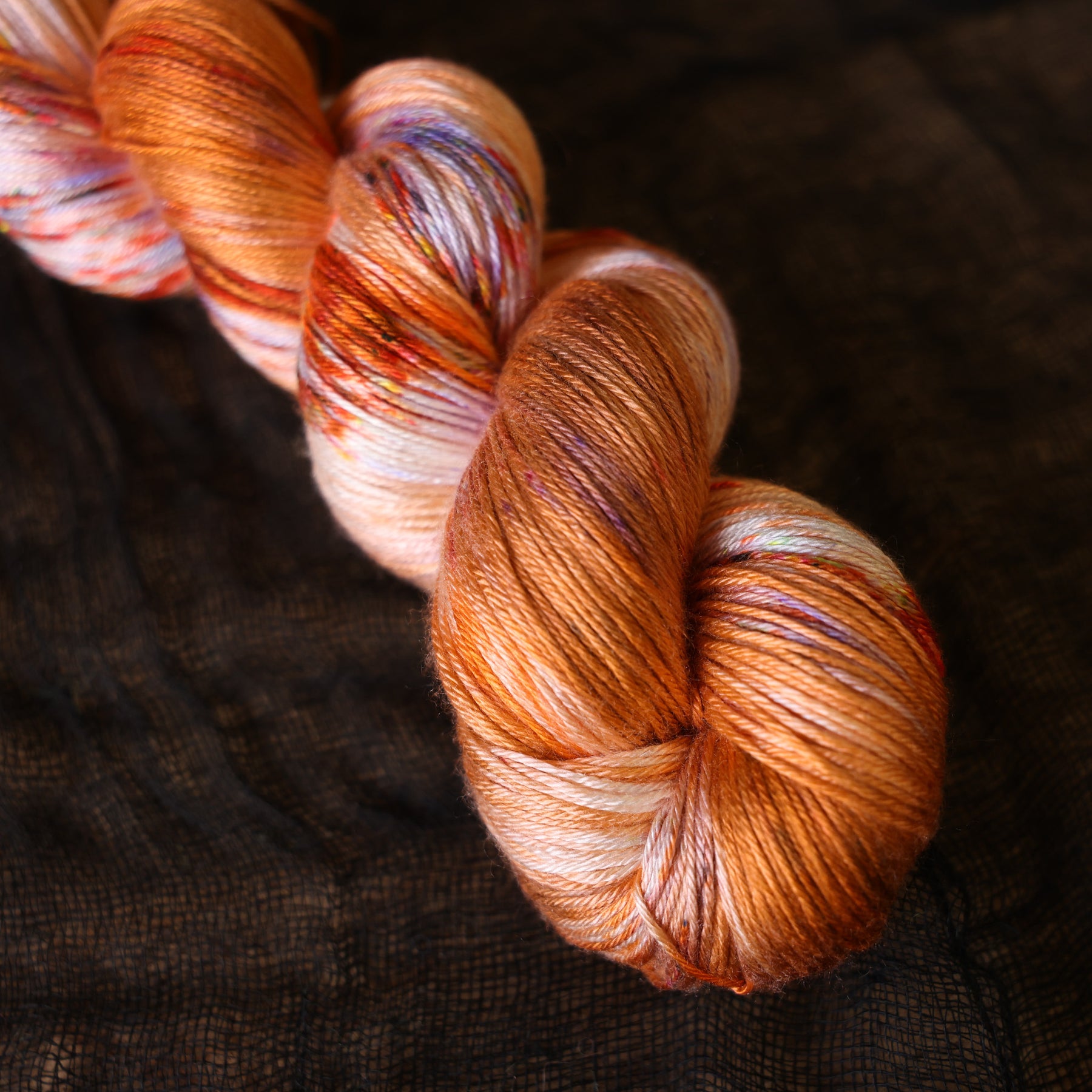 Mulberry Silk Fingering: 100% Grade A Mulberry Silk; 438 yards; 100 grams. This base is pure shiny luxury. 100% pure silk is great for shawls and garments with amazing drape and shine.