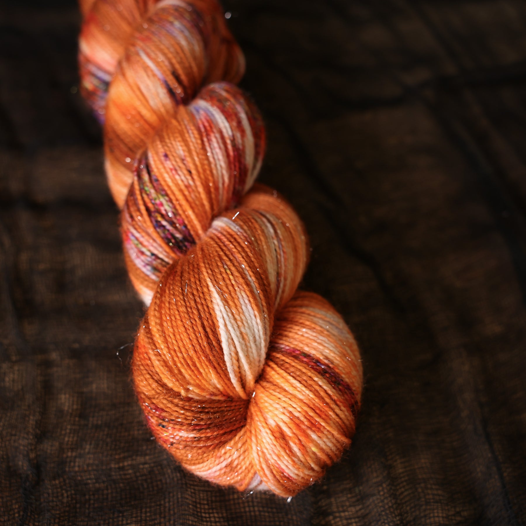 Sparkle Fingering: 75/20/5 Superwash Merino/Nylon/Stellina; 438 Yards; 100 grams. A strong spun sock weight yarn with a tiny hint of glimmer spun into the yarn.