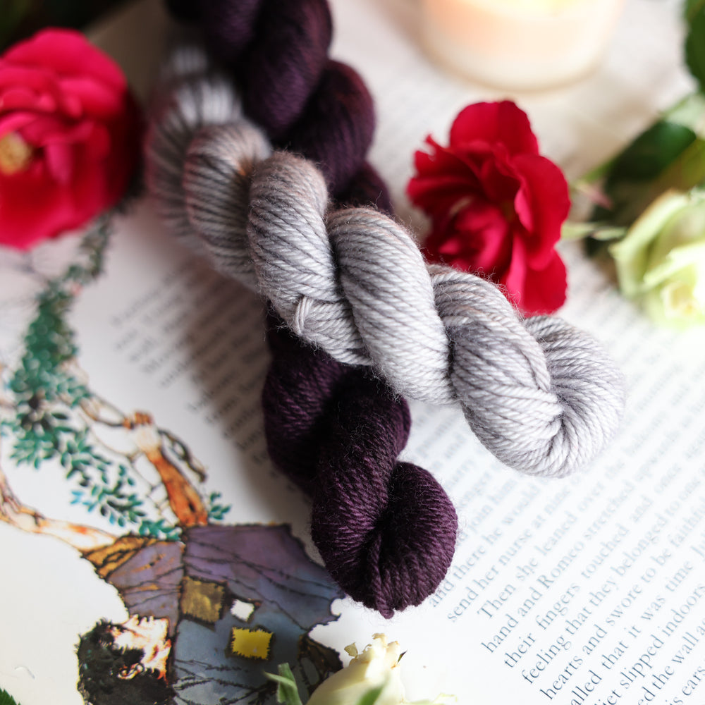 💘 The Lovers Set is a romantic pairing of rich plum and soft dove grey. Juliet & Romeo are a pair of tonal solids, which means that there are gentle hue shifts throughout the colorway, bringing more depth and intrigue to your projects. Get them as a set or Romeo and Juliet are available as individual colorways.