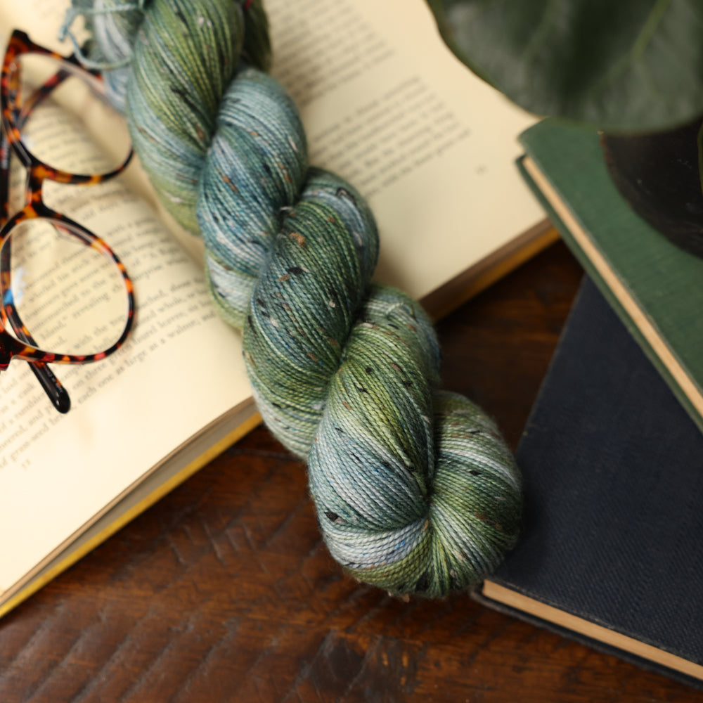 I’m pretty sure Mr. Darcy would wear the socks I made for him out this yarn while he’s walking towards me through the mist rolling over the moors. This colorway is a beautiful natural green with magical blues and tan, brown, and black donegal neps. Misty Moor is perfect for protecting yourself from any drafts.