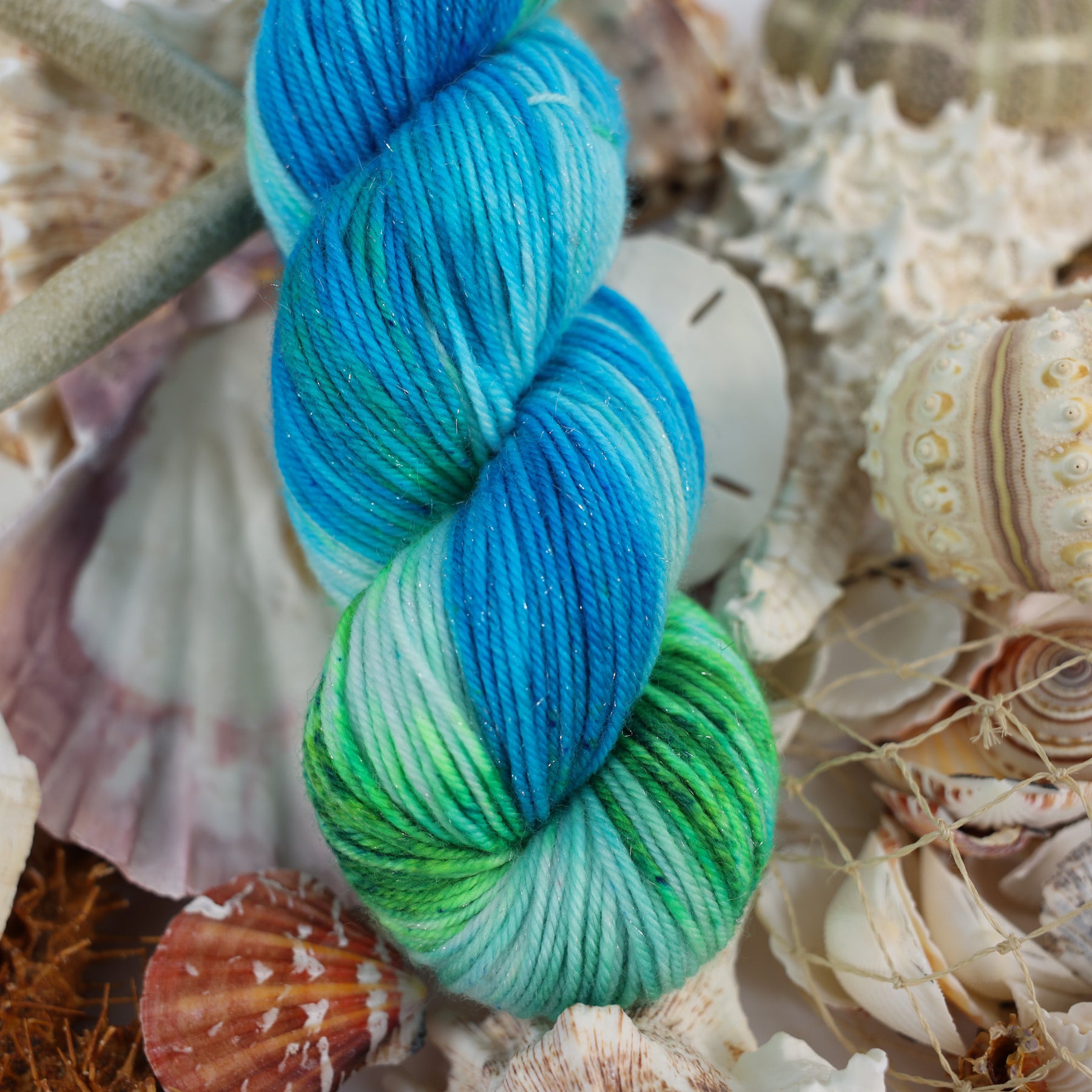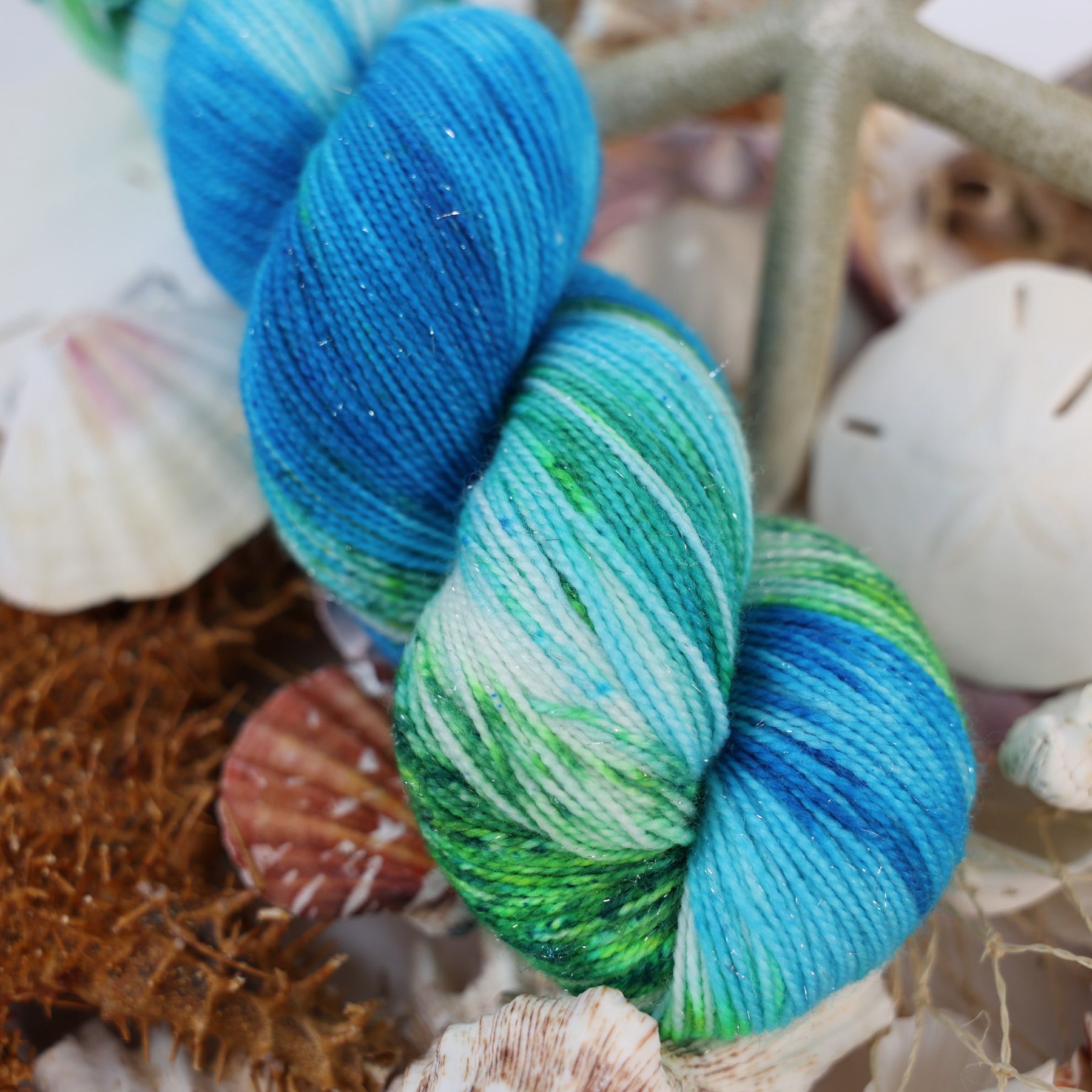 Sparkle Fingering:Ā 75/20/5 SuperwashĀ Merino/Nylon/Stellina; 438 Yards; 100 grams. A strong spun sock weight yarnĀ with a tiny hint of glimmer spun into the yarn.