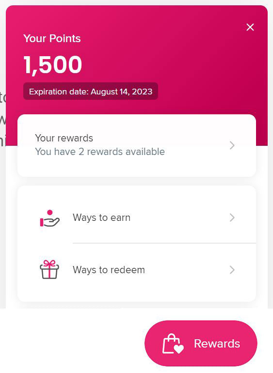 Login to your account and then navigate back to the home page and click the pink "Rewards" button in the bottom right corner of the screen.