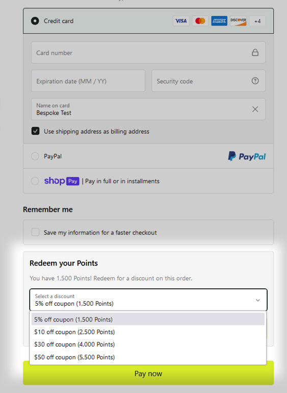 It's easier than ever to use your points for discounts! Hit the 'Redeem Points' button at checkout to apply them to your current purchase.