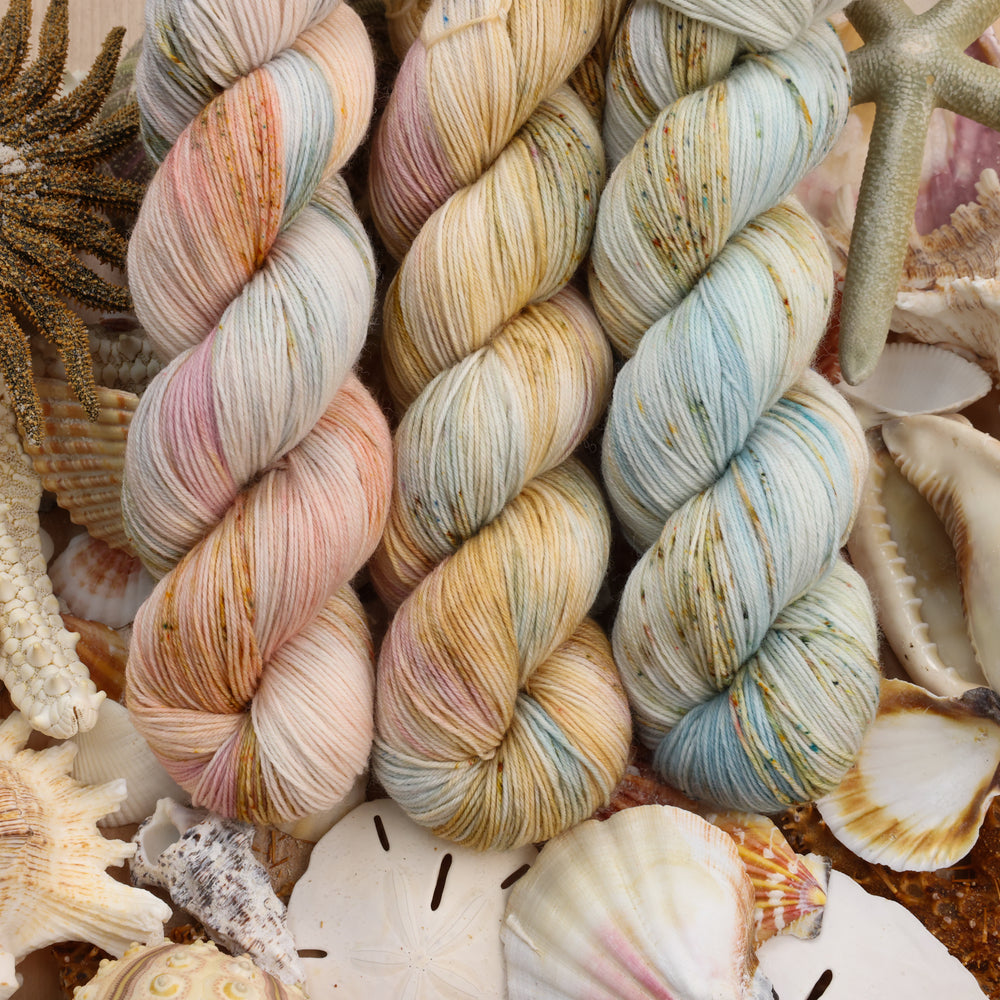🌊 Ocean Treasures is a dreamy yarn set that captures the spirit of the shore. It's the perfect seaside palette. Whether planning a breezy shawl or a cozy seaside sweater, these colors make every stitch feel like a salty breeze.